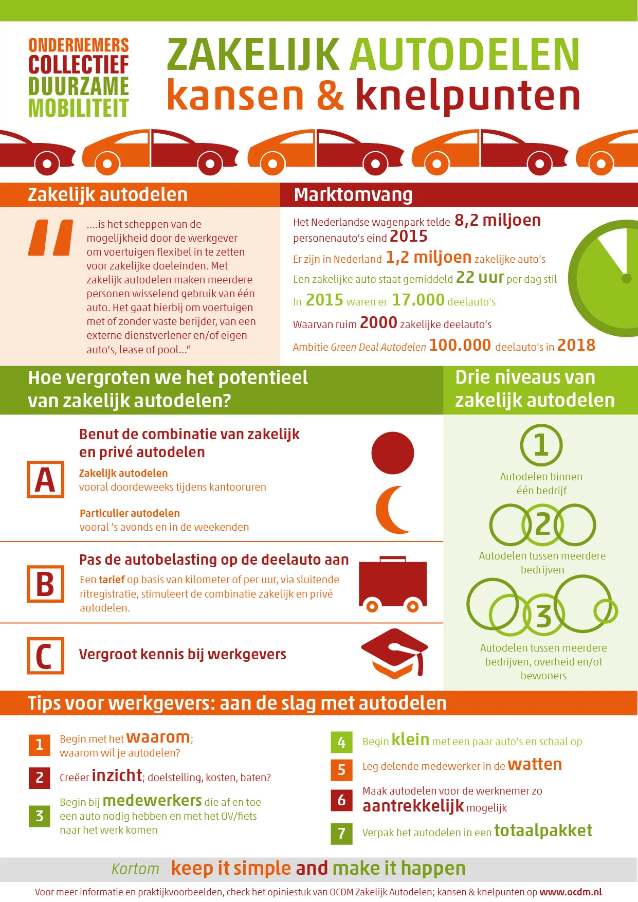 Beter benutten van auto's: Auto's worden niet optimaal benut. De gemiddelde auto staat 23 uur per dag stil, dat kan efficiënter.